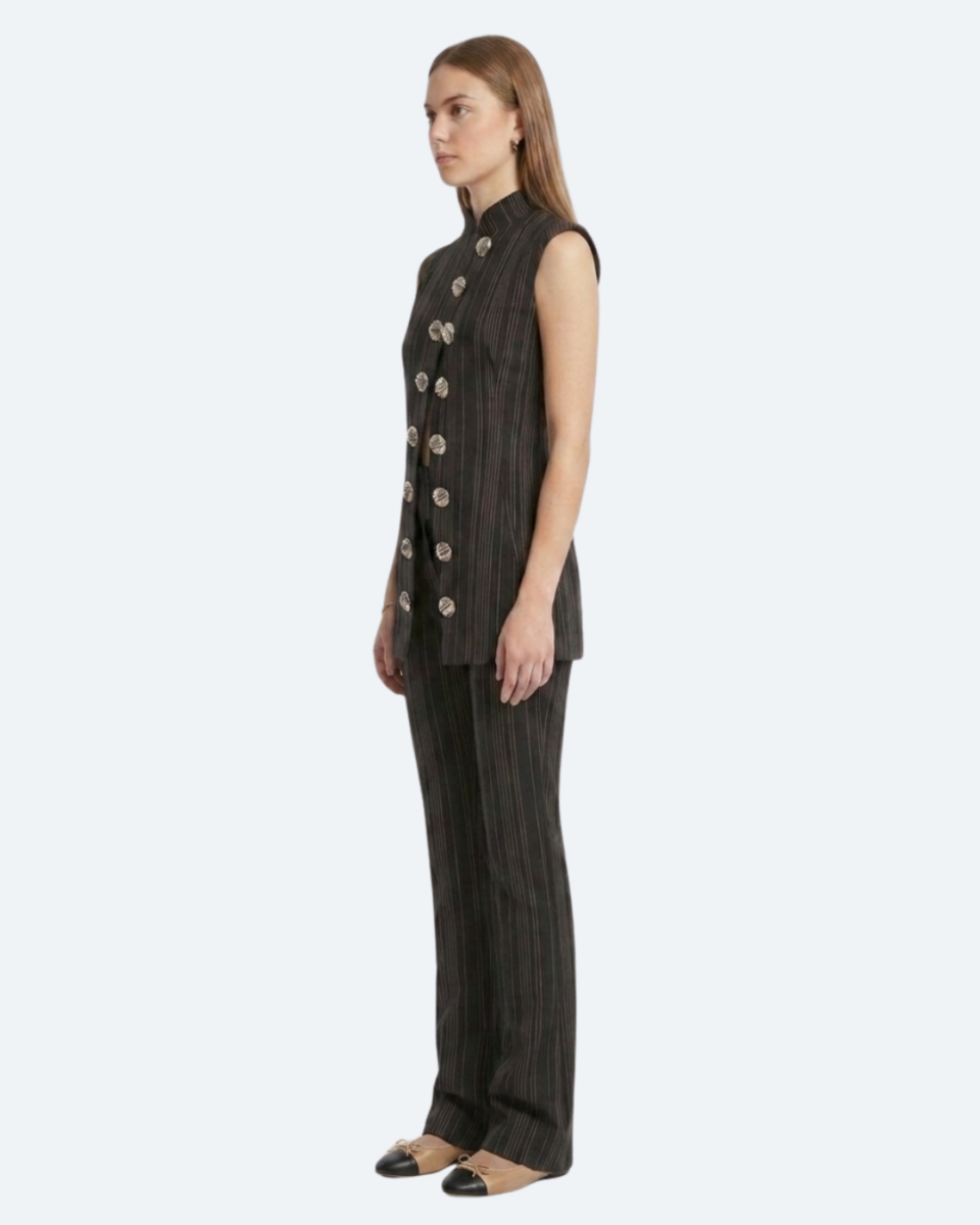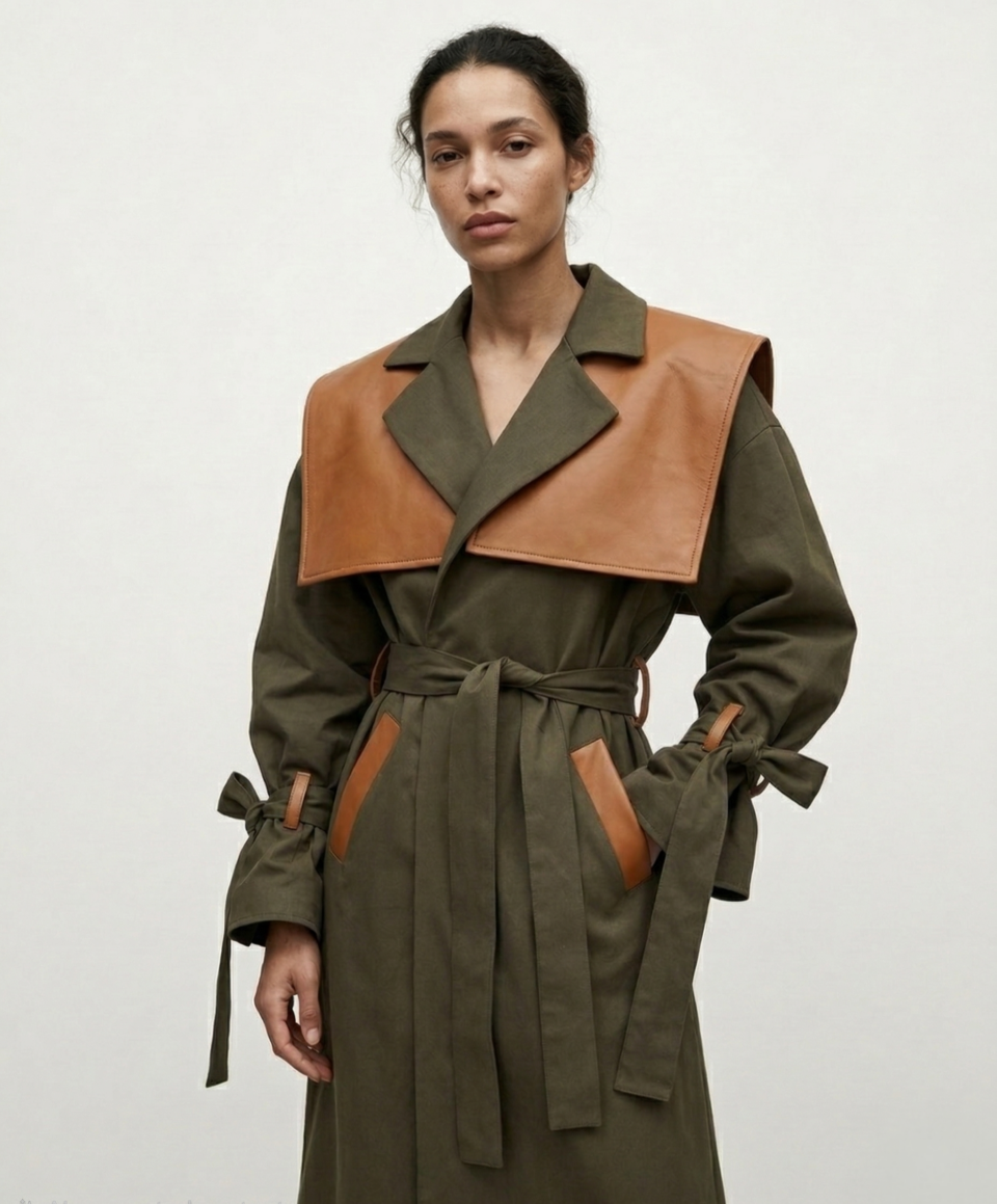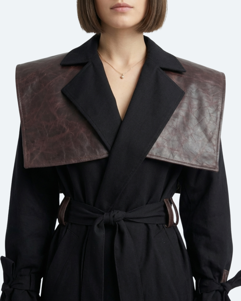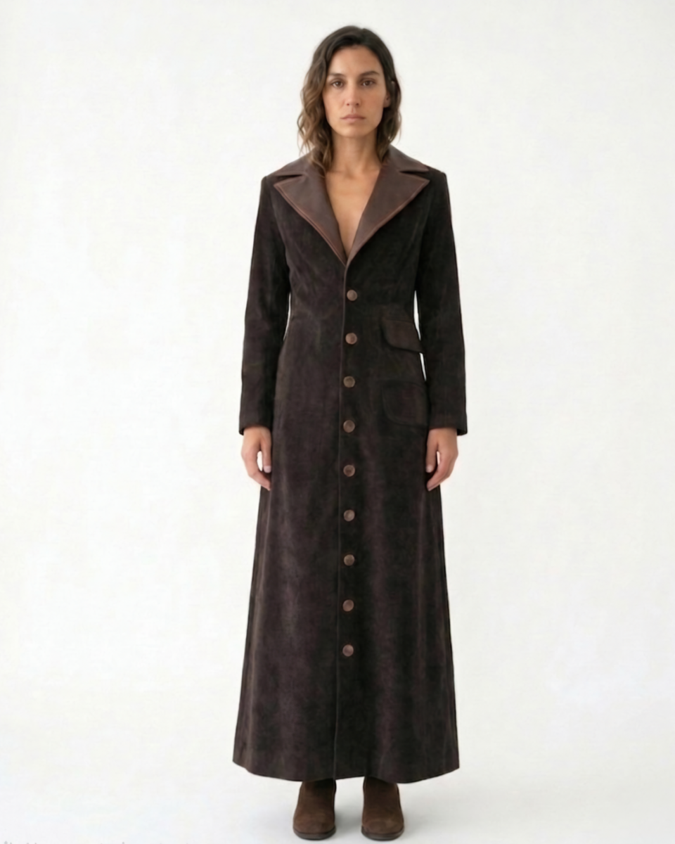 Linotte Maxi Coat in Dark Brown Corduroy & Leather Collar