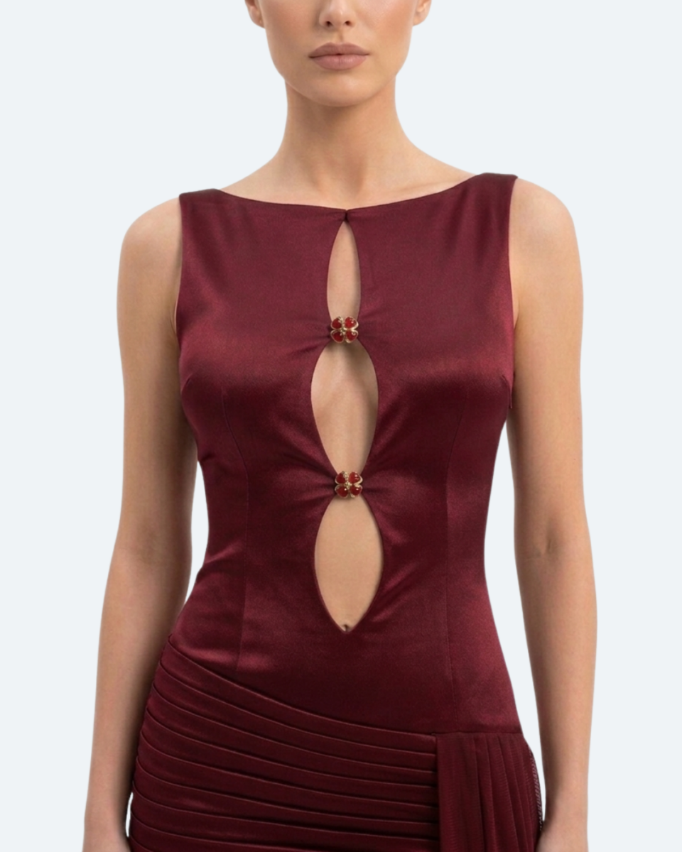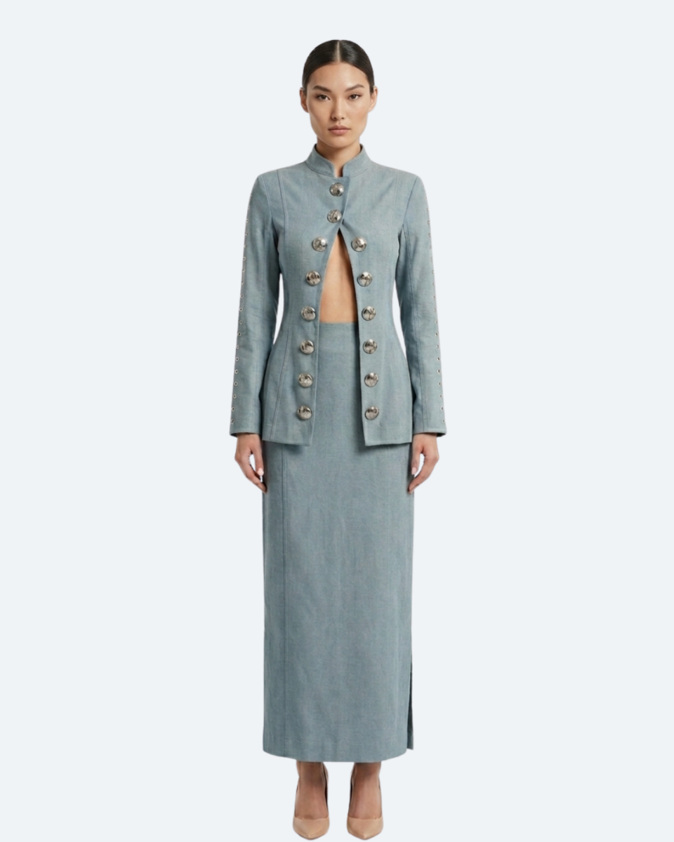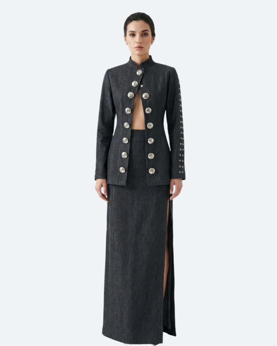 Linotte Maxi Coat in Dark Brown Corduroy & Leather Collar
