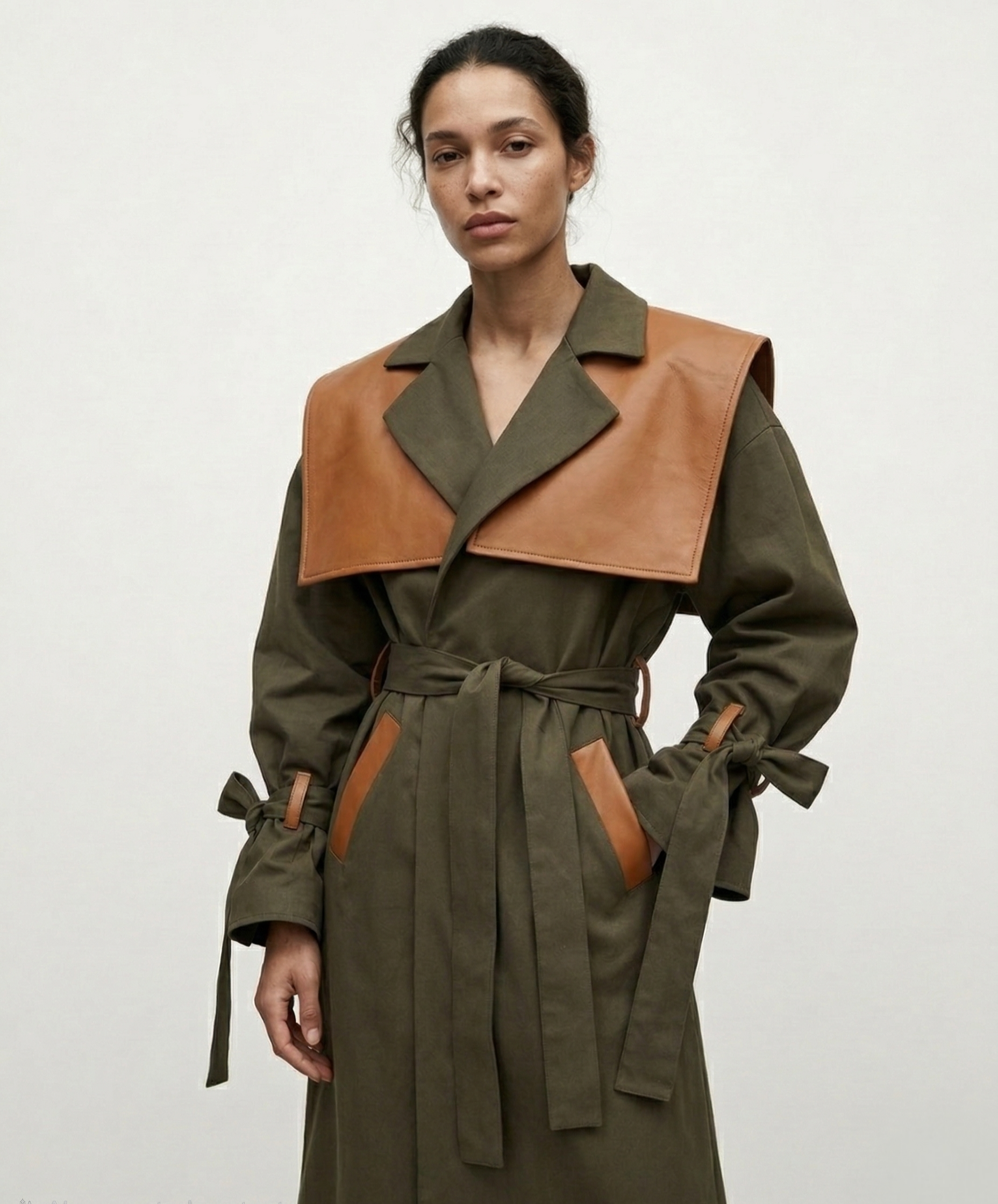 - Adjustability: Self-tie closures at the waist and wrists to customize the volume and shape.